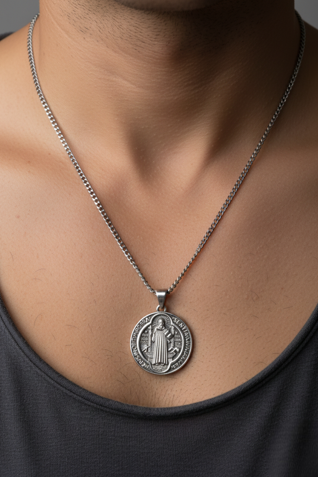 Immaginatevi, seduti in una chiesa antica, immersa in una luce soffusa, mentre recitate il vostro rosario. La vostra mano scivola sul vostro Medaglione di San Benedetto, un gioiello religioso che è più di un semplice accessorio, ma un simbolo della vostra fede cattolica e della vostra devozione.