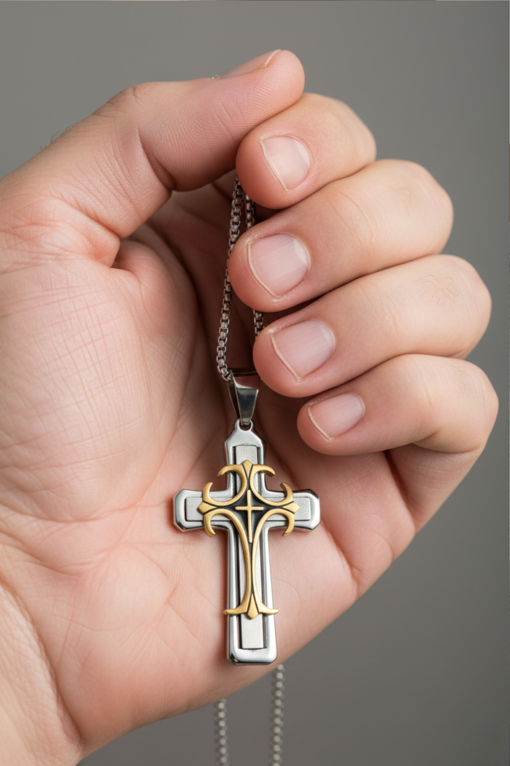 SENTI LO SPIRITO DI GESÙ CON QUESTA COLLANA CON CROCE PENSATA APPOSITAMENTE PER GLI UOMINI. INDOSSA QUESTO PENDENTE CON CROCE CON L'ORGOGLIO DI ESSERE CRISTIANO.