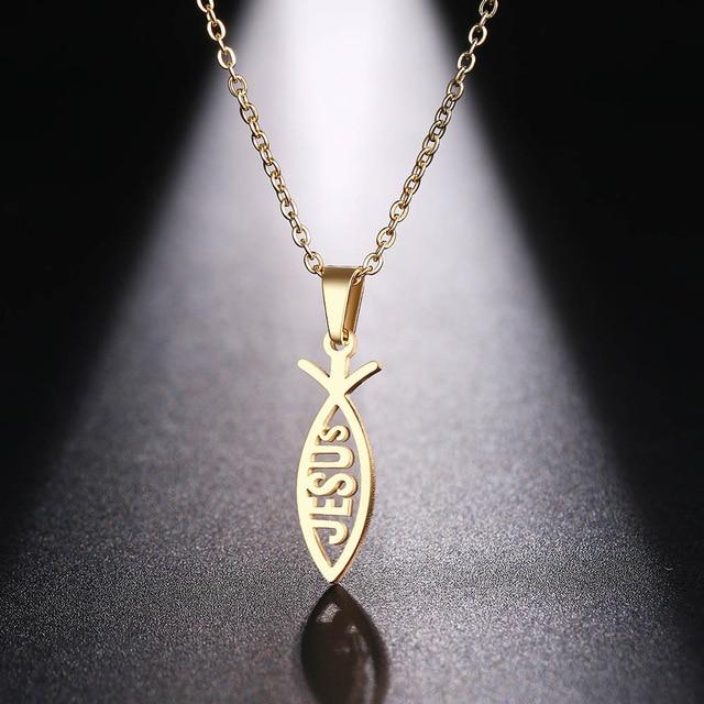 PORTEZ CE SYMBOLE SECRET DU CHRISTIANISME AVEC CE COLLIER ICHTHYS EN OR REPRÉSENTANT UN POISSON.