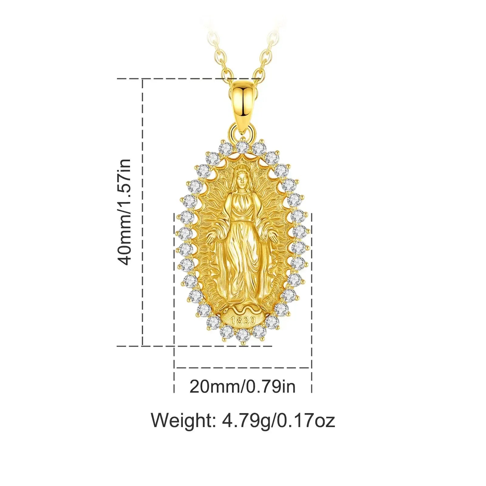 Chaque détail de ce pendentif a été soigneusement conçu pour représenter la pureté et la compassion de la Vierge Marie. Le doux visage de Marie, sculpté avec une précision délicate dans l'or le plus pur, est une source d'inspiration et de réconfort dans les moments de doute ou de difficulté.