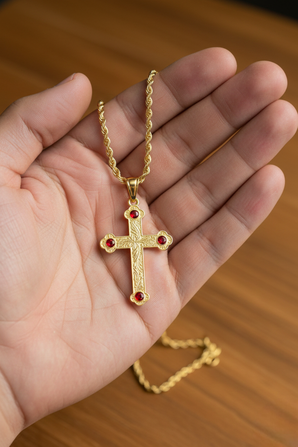 Colar Cruz Ortodoxa<br> Zircão Vermelho