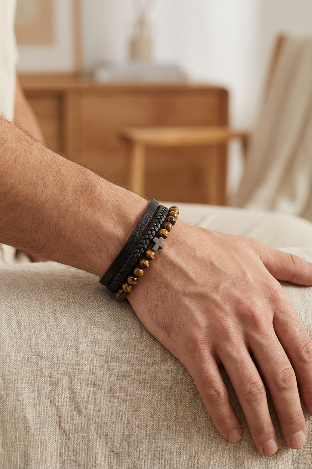 Bracelet Croix Homme <br>Bracelet Croix et Perles-Boutique Chrétienne